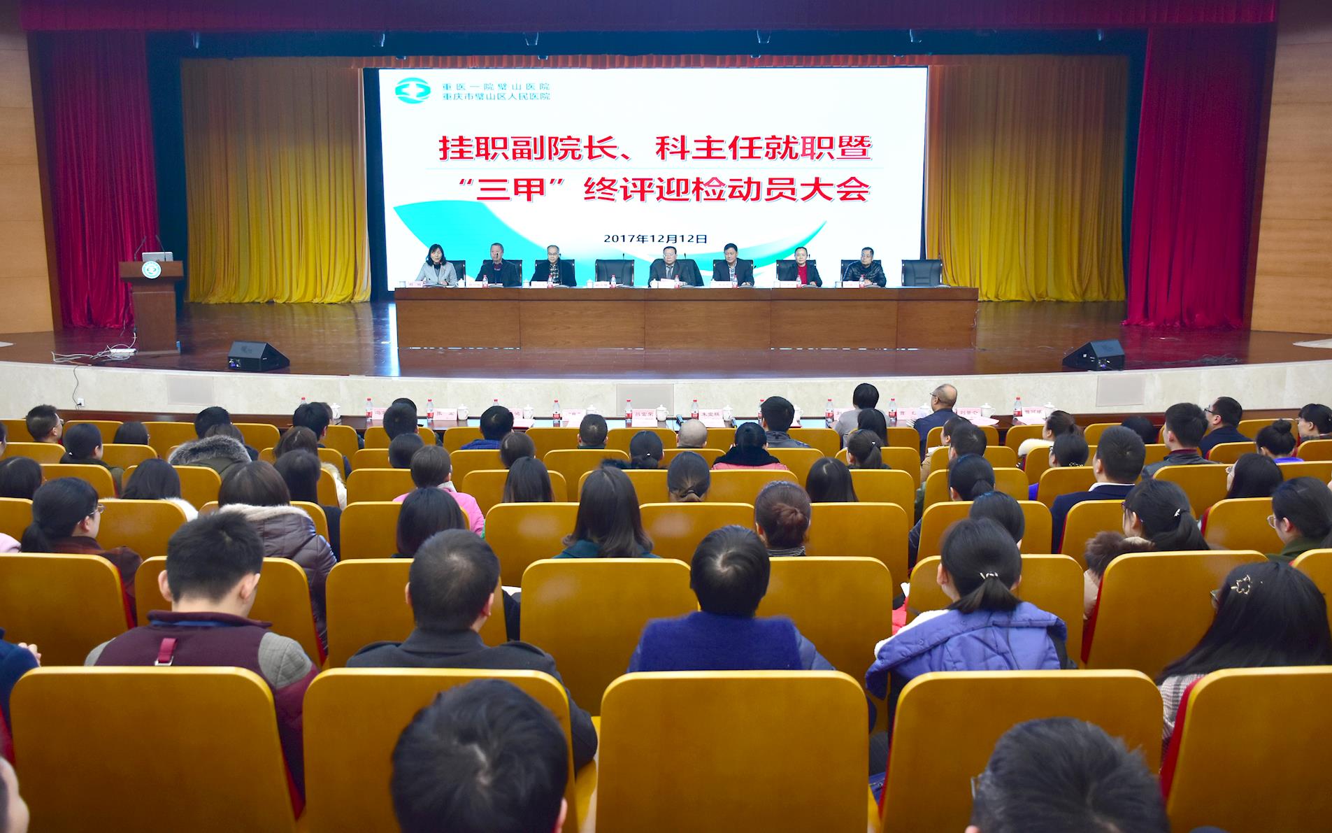 我院“三甲”创建工作进入决胜关键时期,为统一思想,凝心聚力,12月12日,医院召开“挂职副院长、科主任就职暨 ‘三甲’终评迎检动员大会”。重医一院副院长吕富荣、区卫生计生委主任柯真碧以及重医一院4位挂职专家出席会议。会议由院党委书记刘鸿主持。我院班子全体成员、中层干部、创建骨干、质控骨干等近500人参会。