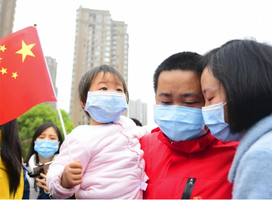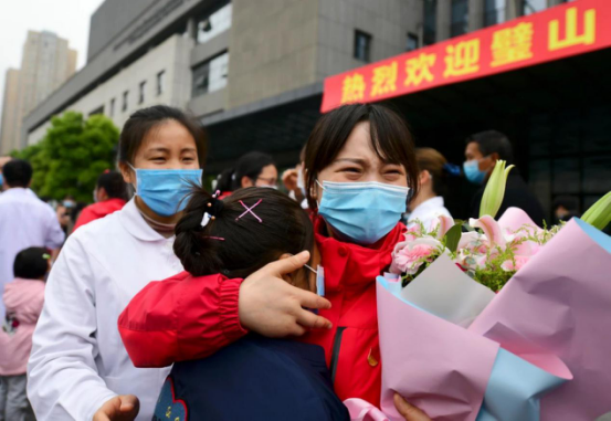 当车门打开的一瞬间,所有人齐声高呼:“抗疫英雄,欢迎回家!"家属、同事一拥而上,动人画面中流淌出的,是喜悦、是感动、是希望,是时隔70天的深情一吻,是稚嫩女儿的破涕为笑,是母女相拥的热泪盈眶……