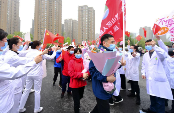 十里春风已绿璧南河畔,姹紫嫣红开遍黛山秀湖。花期,亦是“归期”。在胜利的号角声中,在家乡人民的翘首期盼下,援鄂英雄们踏上归途……