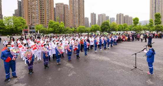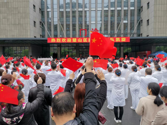 “感谢你们的无私奉献,向你们致敬!”刘晋在欢迎仪式上代表全区人民向医疗队致敬。刘晋表示,在祖国和人民最需要的时候,在疫情形势最严峻最复杂的关键时刻,你们积极响应党的号召,主动请缨、勇敢逆行,义无反顾奔赴湖北抗疫一线,你们回归标志着璧山援鄂医疗任务圆满完成!