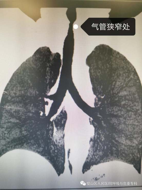 贺女士近段时间因呼吸困难到我院呼吸内科就诊,经支气管镜检查后,发现是声门下处因瘢痕体质出现了瘢痕挛缩狭窄,几乎完全堵塞气道。