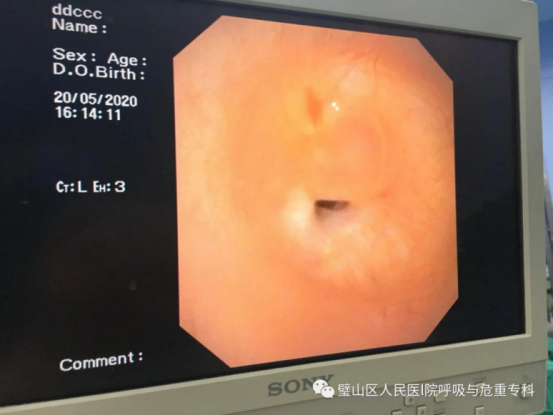 近日,一位患支气管肿瘤患者到我院呼吸内科治疗,检查时,其肿瘤几乎已经完全堵塞气管管腔,若不及时手术,随时可能发生呼吸衰竭。