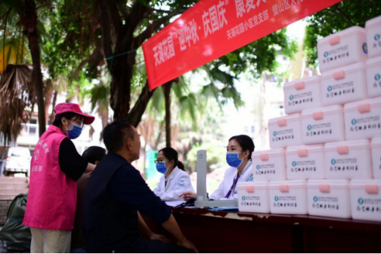 9月29日,我院医技一支部、医技三支部、内科二支部、内科十一支部联合开展主题党日活动,多学科医生们走进天湖花园小区,为居民送去健康和节日的祝福。
