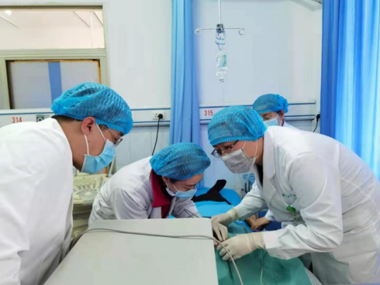 廖爷爷才到科室住院时,疼得无法正常行走,痛得无法入睡,用他的话讲,疼得“生不如死”,完全影响了他的正常生活。据了解,廖爷爷的疼痛评分为9分(临床上常用的VAS疼痛评分标准从0-10分分为十一级)。廖爷爷入院次日,罗意博士和杨大梅主治医师、吴迪医生在无菌操作下对其行“超声引导下左侧眶上神经射频手术”治疗,手术过程非常顺利。手术结束后,廖爷爷高兴地表示,效果立竿见影,疼痛明显减轻,疼痛评分降为了1分。