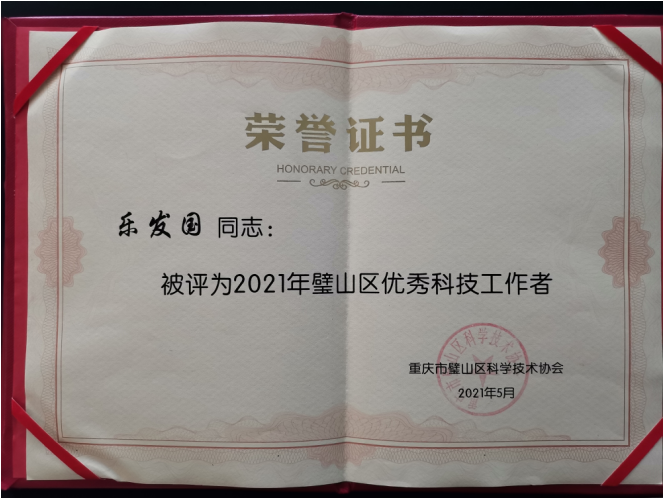 科技兴则民族兴,科技强则国家强。为了鼓励科技工作者奋发图强,建设科技强国,重庆市璧山区科学技术协会评选出了10位科技工作者进行表彰,并于2021年5月27日上午举行了表彰大会。璧山区人民医院睡眠心理中心主任乐发国博士荣获此项殊荣。