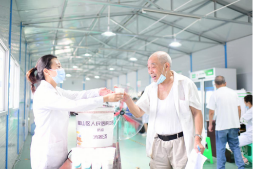 在活动现场,医护人员为群众送上一杯杯解暑的“中药消暑汤”,并协助开展秩序维护、答疑释惑、接种引导、科普宣教等工作。医护人员以热情、耐心的服务得到了广大居民好评的同时,也用实际行动为全国文明城区的创建做出了积极贡献。