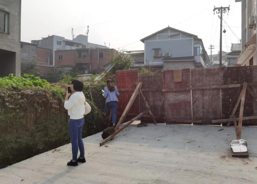 大兴镇的采集时间是下午一点,刘明秀、徐兰和冉艳在中午12点准时乘坐车辆出发,当车子导航驶入一条碎石小路时,她们傻眼了,前方被一块块木板钉成的围墙所阻挡。坡上的一位老人提醒道:“这条路现在走不通了,疫情缘故今天早才拦上的。”延误了采集时间怎么办?刘明秀等人着急不已,随即向老者讲明情况请求其帮助,并各自联系了村委会的行政点长。