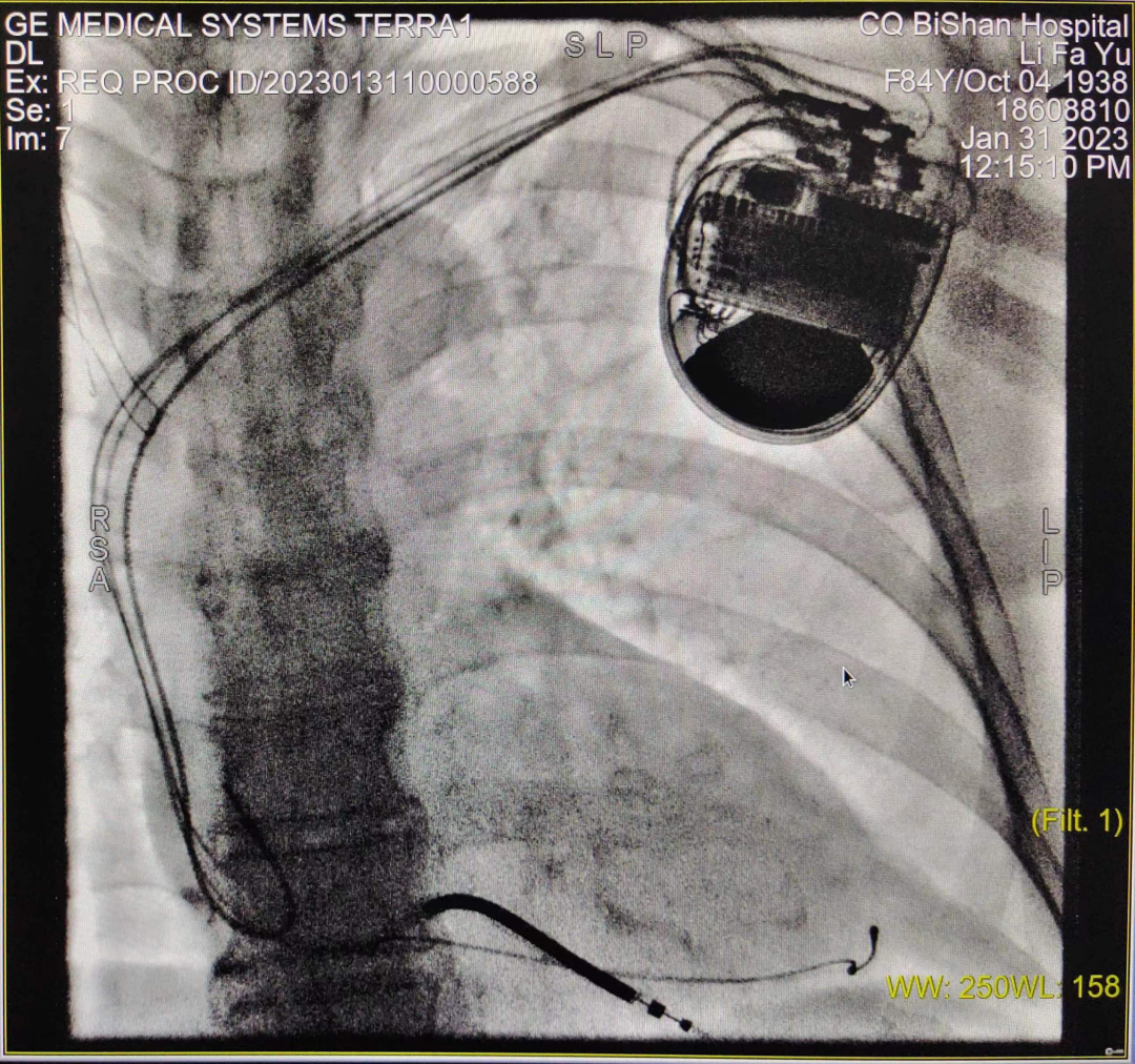 于长青主任高度重视,结合患者既往病史、治疗史,先后多次组织科室团队及医院MDT团队讨论,并报请医务科批示,最终决定给该患者安置三腔起搏器,实施双心室同步起搏的心脏再同步化治疗,改善患者的心力衰竭症状。科室起搏电生理团队经过充分的术前准备,于1月31日成功为患者实施CRT-D介入手术,手术过程顺利,患者无任何不适,术后5天即安全出院。术后心电图提示:窦性心律,双心室起搏心律,QRS宽度120-130ms,患者劳累气促症状较前明显改善。
