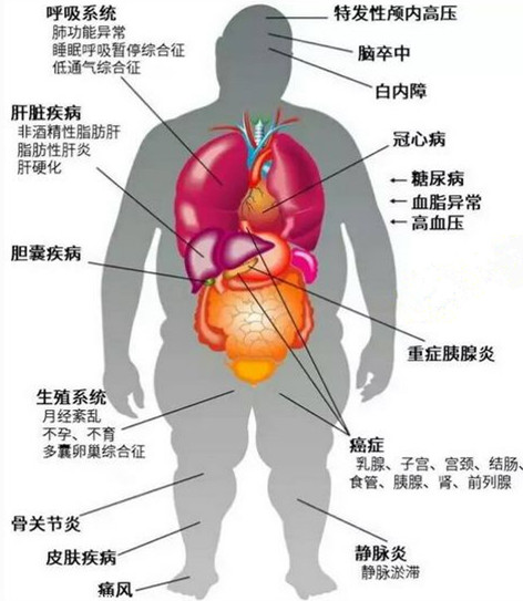 肥胖不仅影响形体美观,更会导致一系列相关健康问题及心理问题,如糖尿病、高血压、高血脂、严重脂肪肝、冠心病、呼吸睡眠暂停(严重打鼾)、月经紊乱、抑郁等,严重危害身体健康。