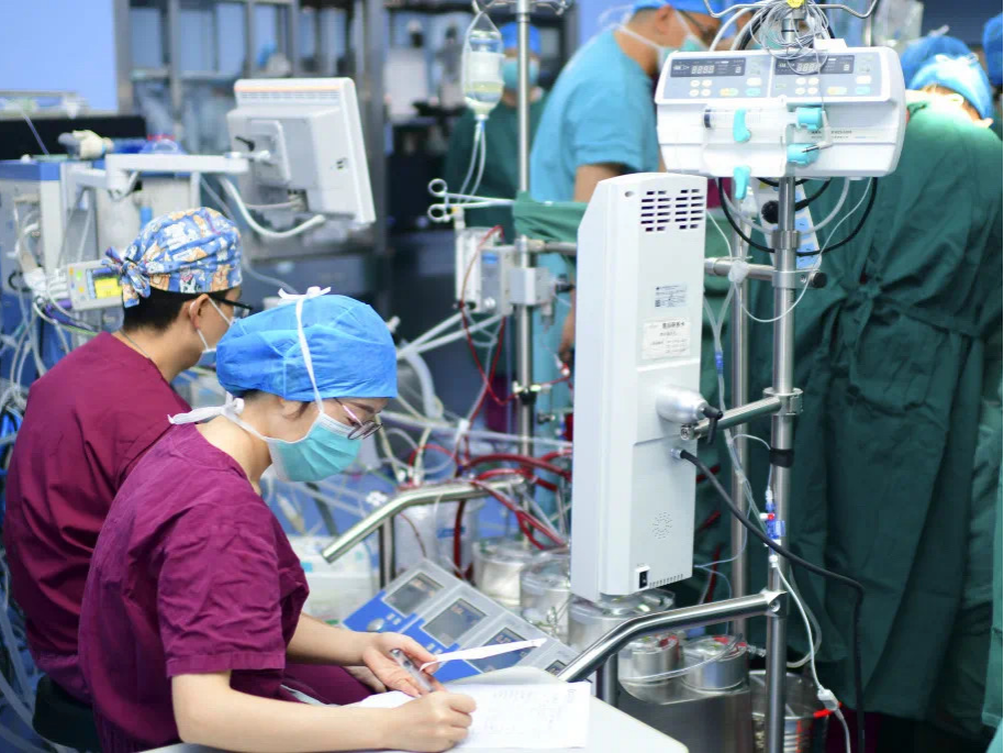 3.体外循环术:体外循环心脏手术是现代心脏外科手术成功的基本保障条件,通过体外循环机连接上下腔静脉,作为临时心脏,保证患者身体正常的血液循环,从而实现心腔及大血管的手术操作。