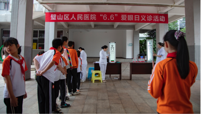 每年6月6日为全国爱眼日,节日的确立旨在普及科学用眼知识,提高青少年眼健康水平,预防眼疾,并动员社会各界力量共同关心人们的眼健康。 在第26个“全国爱眼日”到来之际,璧山区教育委员会在城北小学举办“感谢心灵的窗”爱眼日活动,区人民医院党委副书记陶锐、眼科主任高煦博士受邀参加,并带领眼科医护人员来到城北小学,开展“6.6全国爱眼日义诊”活动,高煦博士还为小朋友们带来了爱眼护眼专题讲座,提醒大家关注眼健康。