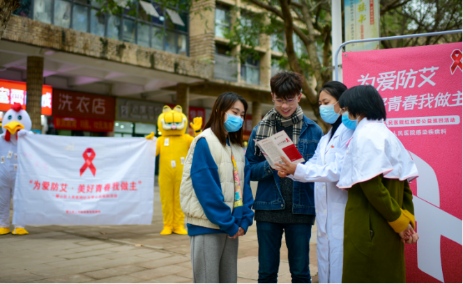 连日来,我院感染性疾病科医护人员走进璧山区机电职业技术大学,开展了爱心签名、贴“红绸带”、健康体检等公益活动,为年轻师生进行艾滋病防控科普宣传。 世界艾滋病日的标志是红绸带,其如同一条纽带,将世界人民紧紧联系在一起,共同抗击艾滋病。它同时象征着我们对艾滋病感染者的关心与支持,象征着我们要用“心”来参与预防艾滋病的工作。