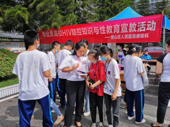 当前,高校学生对性病、艾滋病知识缺乏,防艾意识薄弱, 青年学生艾滋病疫情上升较快,毕业季来临,高校艾滋病防控工作面临新挑战。 近日,我院感染科联合重庆市公共卫生救治中心开展了“青春无艾校园行”——毕业季高校HIV防控知识与性教育宣教活动。医护人员走进璧山区职教中心,通过知识讲座、海报宣传、手册发放及现场答疑等方式,向同学们普及艾滋病的防控知识。