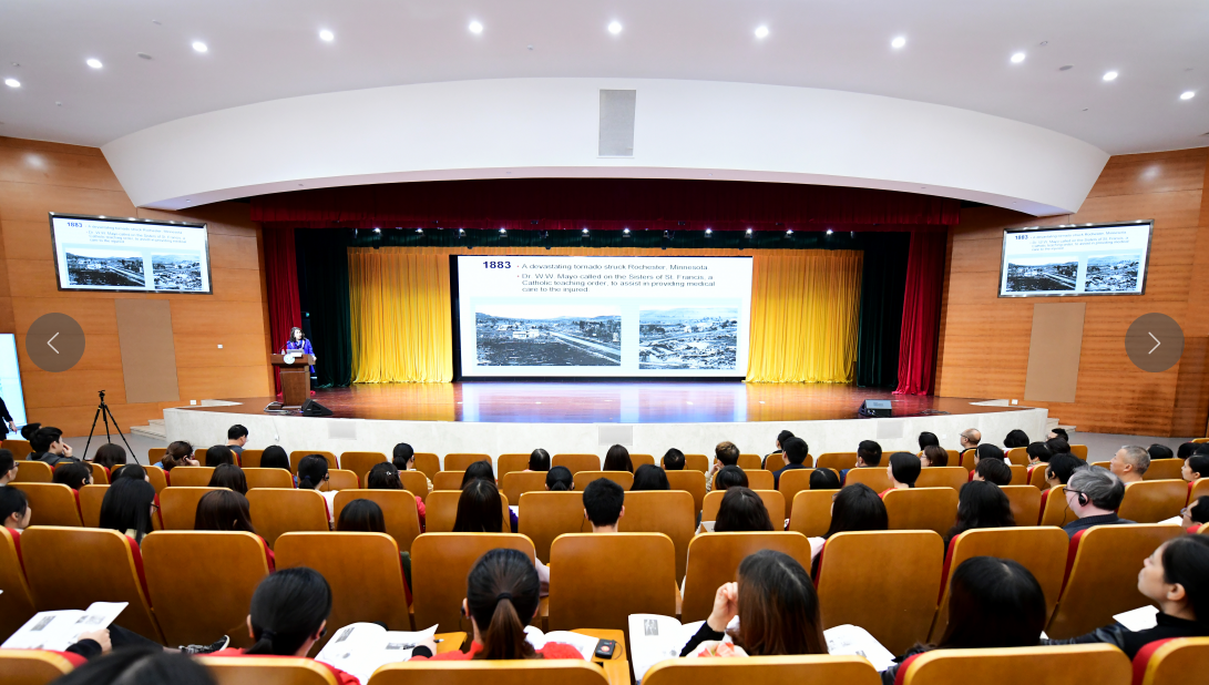 c2f35187812a4c5eb19fc3a4f98939fe.png 11月3日,世界顶级医学殿堂——美国梅奥诊所(Mayo Clinic)原领导力发展部主任格蕾斯·戈林奇(Grace Gorringe)女士应邀来院开展了一场精彩讲座《梅奥文化与领导力发展》,为全院干部职工分享了全球最好医院的管理经验。 格蕾斯女士从梅奥诊所的历史、发展现状以及核心价值观开始,通过一个个蕴含哲理的故事,生动地阐述了医院领导模式、领导力建设、文化建设、团队建设、人力资源管理及职工个人职业发展的管理内涵。“患者的最大利益是我们唯一需要考虑的利益。”格蕾斯女士说,“梅奥医学中心的核心价值观是患者需求至上(the needs of patient come first)。我们选择员工首要考虑的是价值观,其次是技能(Hire for values first, then skills),有了相同的价值观,才能汇聚团队的力量。” 梅奥医学中心触及心灵的管理风格、“患者至上”的服务理念、员工高度一致的价值观及强大的凝聚力等深深打动了每位聆听者。近2个小时的讲座得到了与会人员的高度赞扬,现场掌声不断。讲座结束,格蕾斯女士与大家积极互动,将整个活动推向了高潮! 会上,我院院长朱堂棋与格蕾斯女士相互交换纪念品并合影留念。 此次讲座不仅让全院职工学习了世界顶级医院的管理理念 ,更为助推医院提升国际化视野、全面提升服务能力起到很好的启迪和促进作用!(党委办 胡秋雨 文/胡悦建 图)