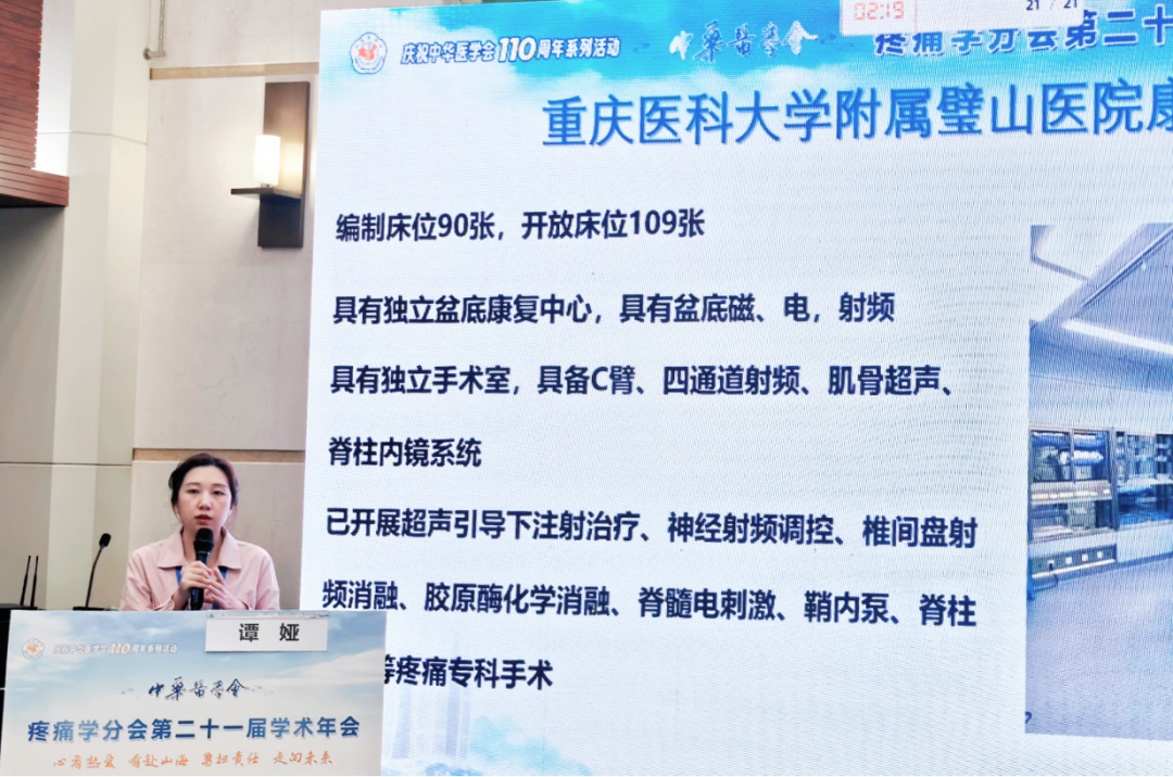 在年会“重庆疼痛医学分会场”专题论坛上,我院谭娅主治医师代表团队作了题目为《盆底磁联合奇神经节射频治疗慢性盆腔痛》的专题报告。该研究基于我院康复医学科、疼痛科近年来积累的临床病例数据,通过严谨的随访观察和统计分析,探讨了一种复合干预策略对于慢性盆腔痛患者的治疗效果及生活质量改善情况。此次大会发言,不仅是科室临床经验的一次高质量输出,更是我院疼痛诊疗水平获得国家级学术平台认可的重要标志。它彰显了科室在盆底疾病微创介入治疗方面的技术优势与学术影响力。