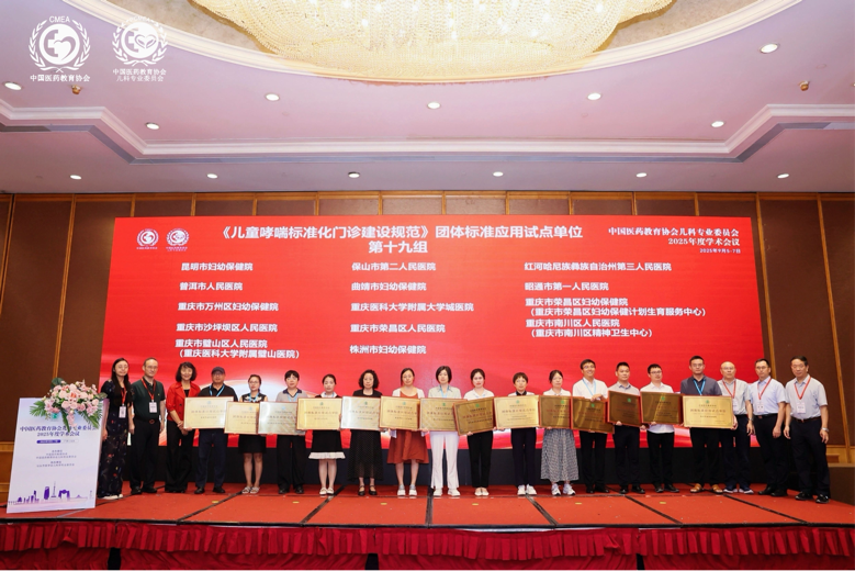 近日,全国《儿童哮喘标准化门诊建设规范》团体标准应用试点单位授牌仪式在广东汕头隆重举行。经过严格遴选与审核,我院凭借在儿童哮喘领域规范化的建设与卓越的综合实力,成功入选重庆市本批次7家试点单位之一,并正式获授牌匾。这标志着我院儿科在学科专业化、标准化建设的道路上取得了里程碑式的进展,赢得了国内权威机构的认可。此项荣誉的获得,离不开院领导的高度重视与各相关部门的大力协同支持。