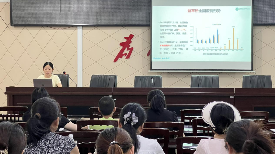 近期,由白纹伊蚊(俗称“花蚊子”)传播的基孔肯雅热和登革热疫情防控形势严峻。为切实提升基层医务人员对这两种传染病的诊疗与防控能力,8月6日,“县聘乡用” 医疗帮扶专家团队在丁家医院开展专项培训。