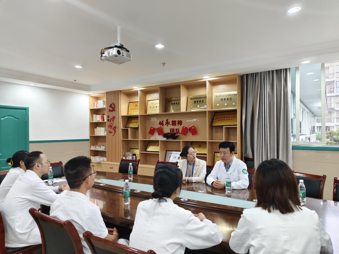查房结束后,闫庆凯主任与我院主要领导及帮扶团队成员举行了座谈。座谈会上,院领导对闫主任的悉心指导表示衷心感谢,并简要介绍了医院近期的发展概况与面临的挑战。派驻团队成员也踊跃发言,分享了在实践工作中遇到的困惑与思考。听了大家的发言,闫庆凯针对大家提出的问题进行了精准解答,就如何进一步优化人才培养、畅通双向转诊流程等方面提出了前瞻性的建议。他指出,党建医共体的核心在于“共建、共享、共赢”,未来重医附属璧山医院和成员单位之间将继续加强紧密协作,推动优质医疗资源持续下沉,共同为区域百姓的健康福祉贡献力量。